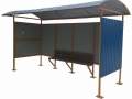 Металлические остановки городского типа. Минимальная комплектация предусматривает навес и заднюю стенку. Для защиты от погодных условий можно добавить боковые части с возможностью монтажа рекламы.